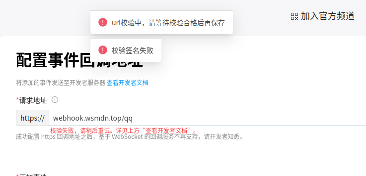 不过注意,如果套cf之类的一定要注意延迟不要太高。腾讯似乎对webhook地址校验有延迟要求。