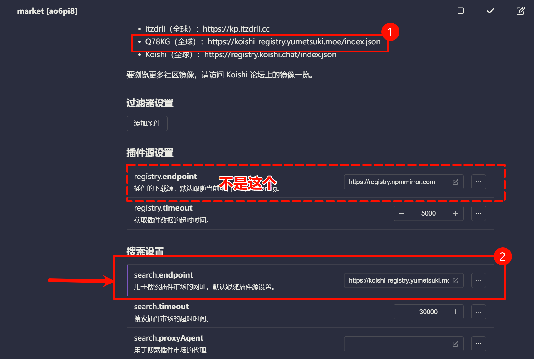 最近在使用了部分第三方的koishi插件市场镜像源之后 会出现插件市场搜索白屏的现象。