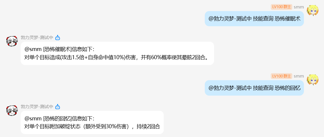 增加了伤害控制技能 恐怖催眠术、减益技能 恐怖的回忆,而 恐怖催眠术 可基于当前命中的属性实现伤害的浮动。