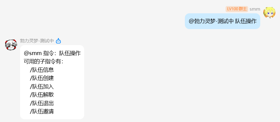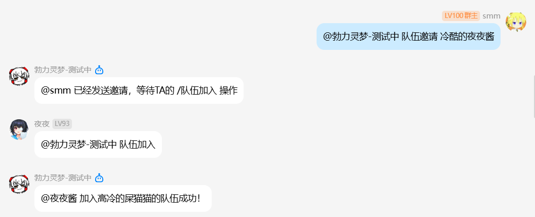 通过 /队伍邀请 和 /队伍加入 完成组队的操作