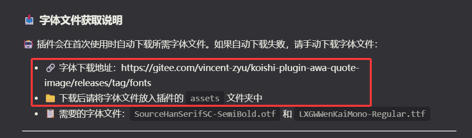 下载地址:https://gitee.com/vincent-zyu/koishi-plugin-awa-quote-image/releases/tag/fonts -