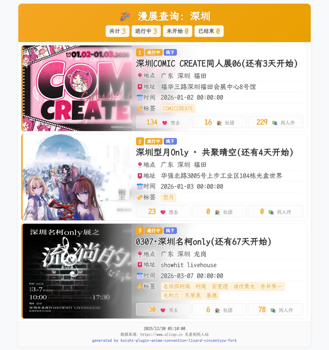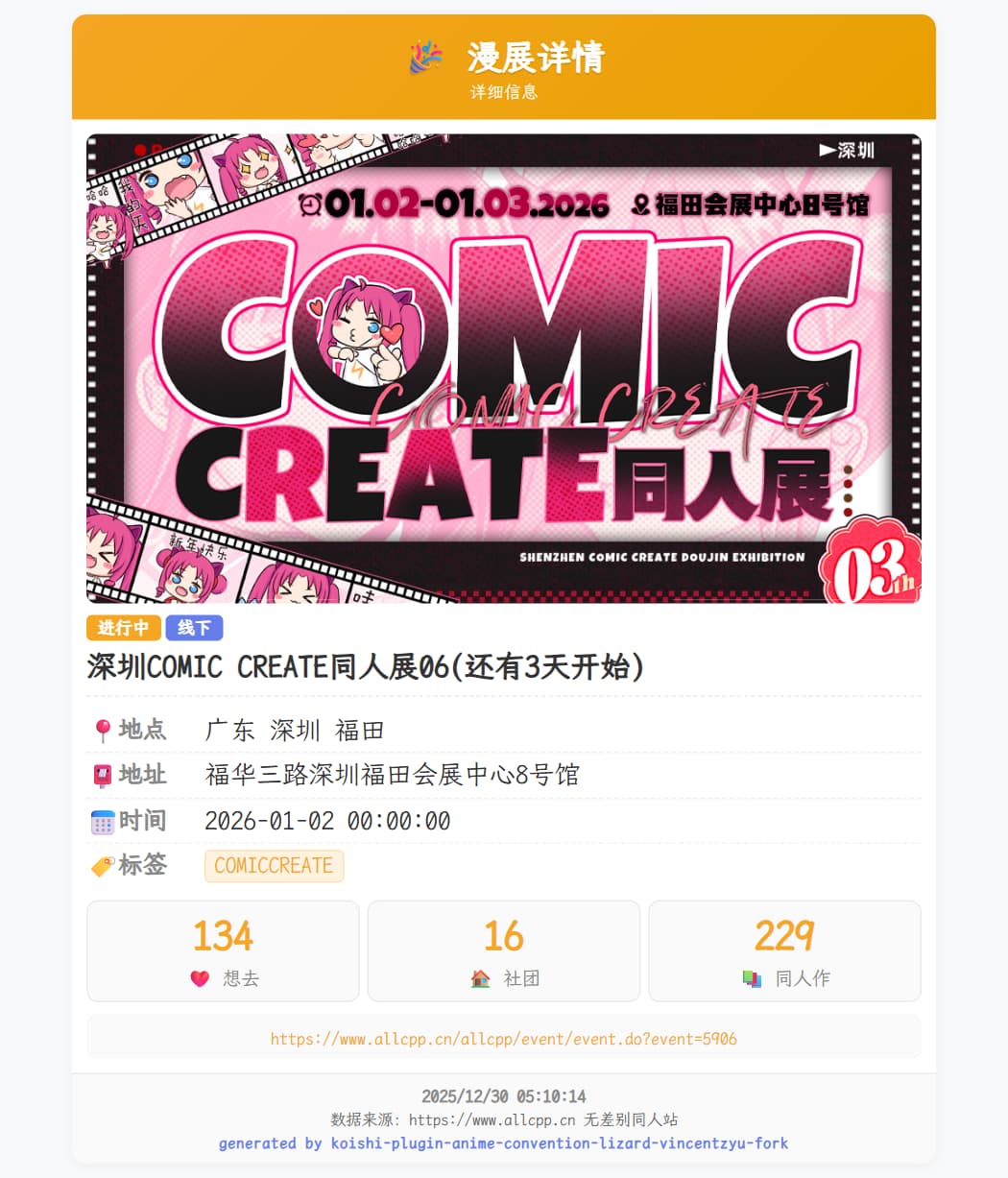 因为预设的API无法使用,插件作者也停止更新了,所以自己手搓了一个比原版第三方非开源API更好的用于漫展查询的API(