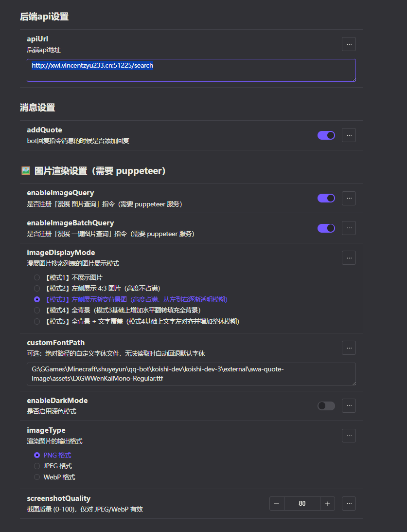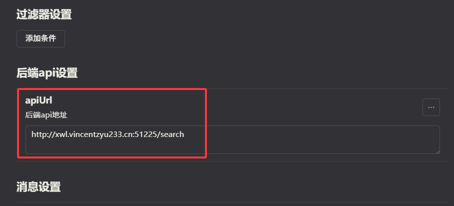 也可以使用我放到公网的后端, 在插件设置页面的apiUrl填入:http://xwl.vincentzyu233.cn:51225/search 就可以啦~
