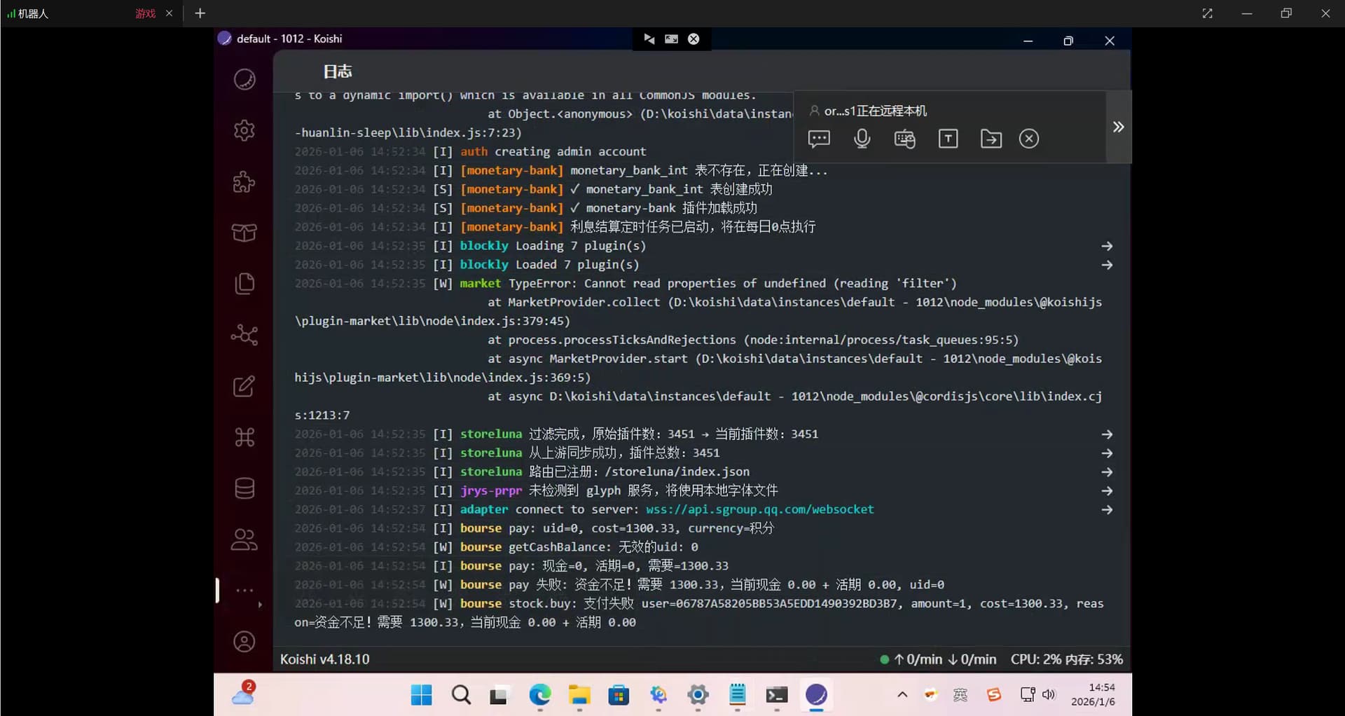 在使用koishi-plugin-monetary-bourse插件时发现指令“stock.buy”无法正确买入股票