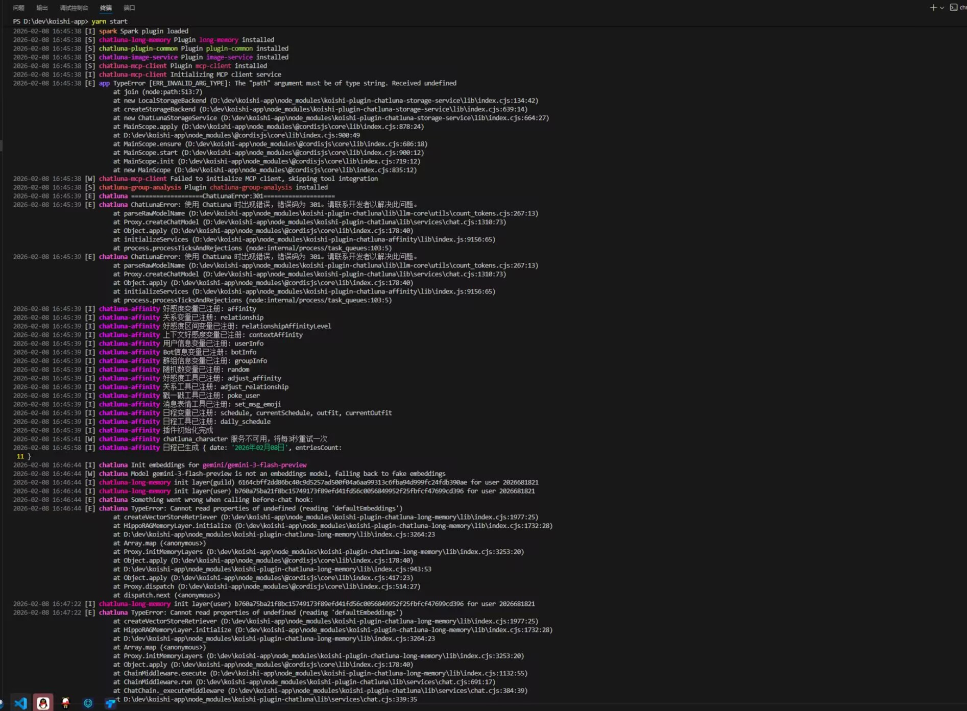 重启koishi侧边栏消失,求助。