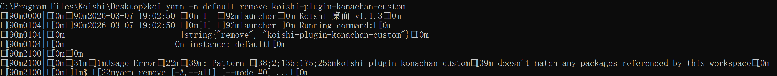 koi yarn -n default remove koishi-plugin-konachan-custom