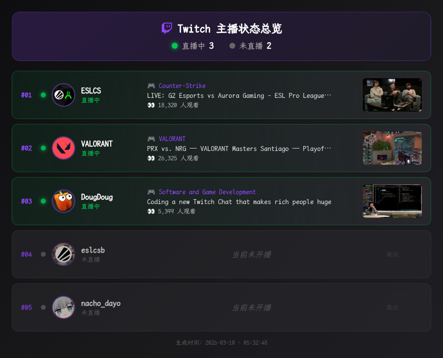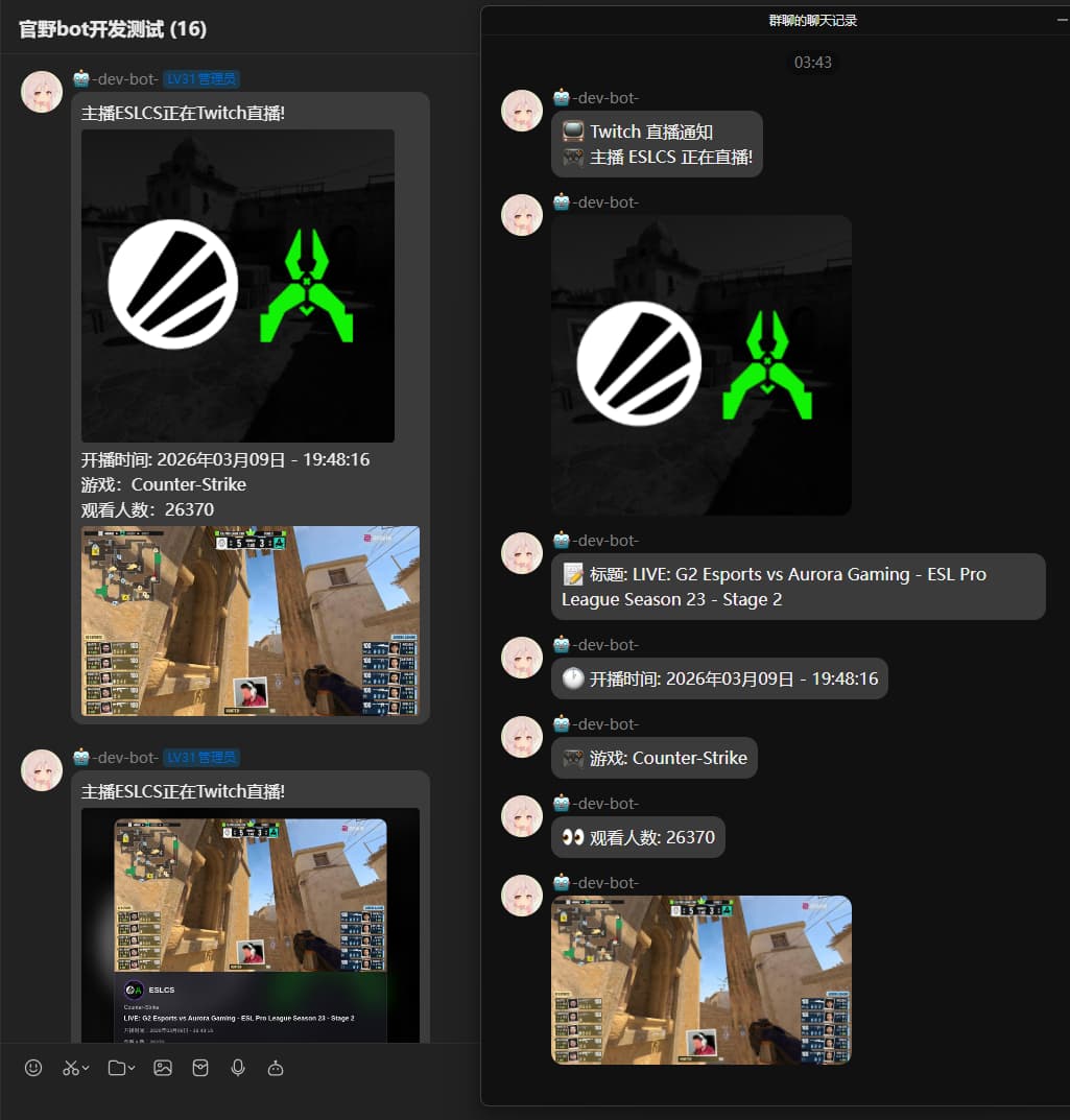 Twitch 直播推送插件 - 订阅你喜欢的 Twitch 主播,开播时自动推送通知到 QQ 群!