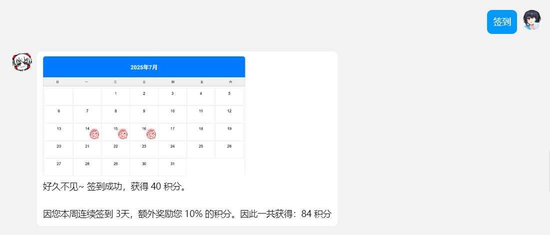 - 增加了 重复签到、非连续签到、连续签到 对应的自定义回复