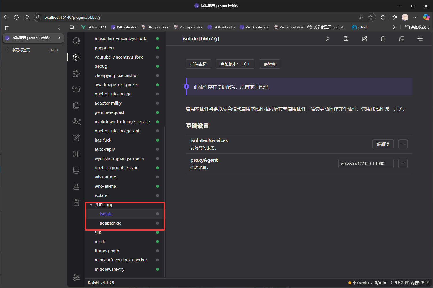 然后启动这个isolate插件(不要手动启动adapter-qq)